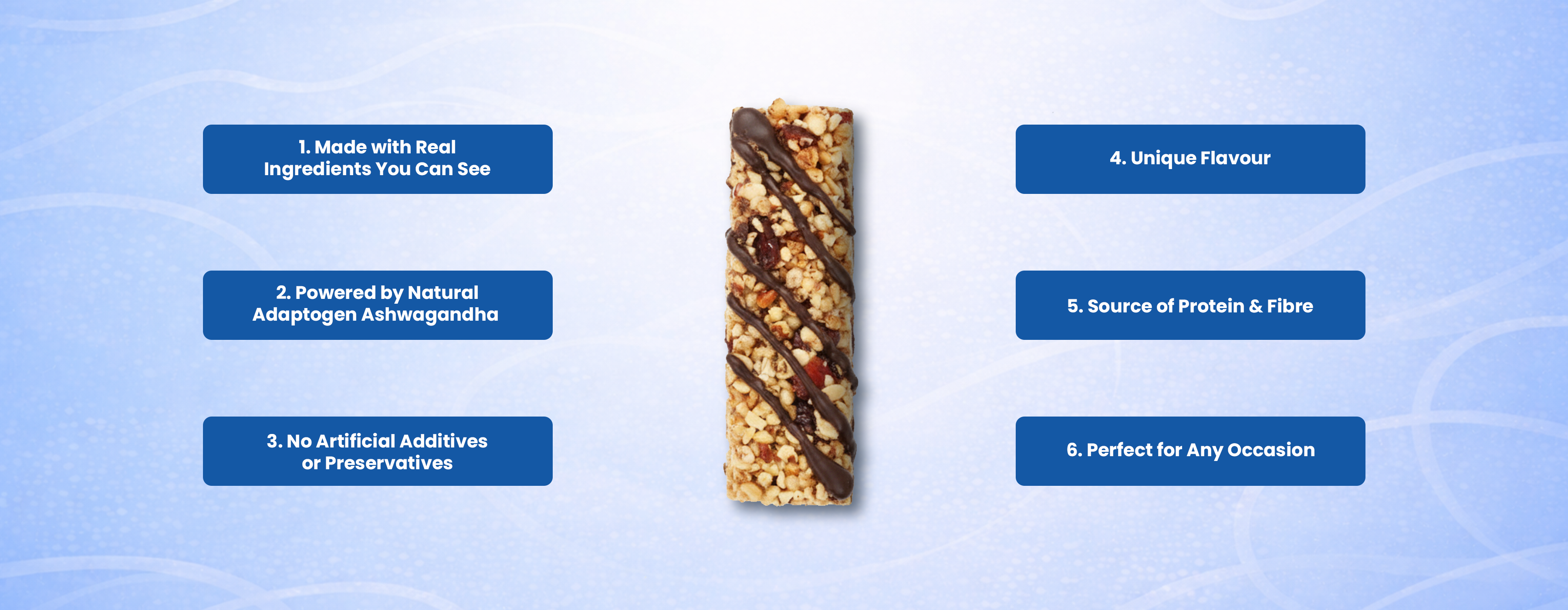 Functional bars are more than just a healthy snack — they’re nutrition with a purpose. Each functional bar is crafted to support your focus, energy, and recovery with science-backed natural ingredients. Unlike ordinary snack bars, they combine clean protein, good fats, and adaptogens to help your body perform better throughout the day.
