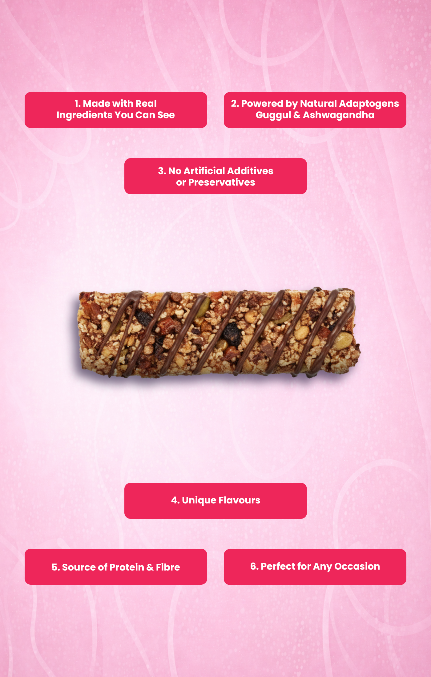 Traditional protein bars focus on muscle recovery. Energy bars give you a quick boost. Functional bars combine the best of both worlds — with added adaptogens and nutrients that support energy, focus, recovery, and calm, all in one.